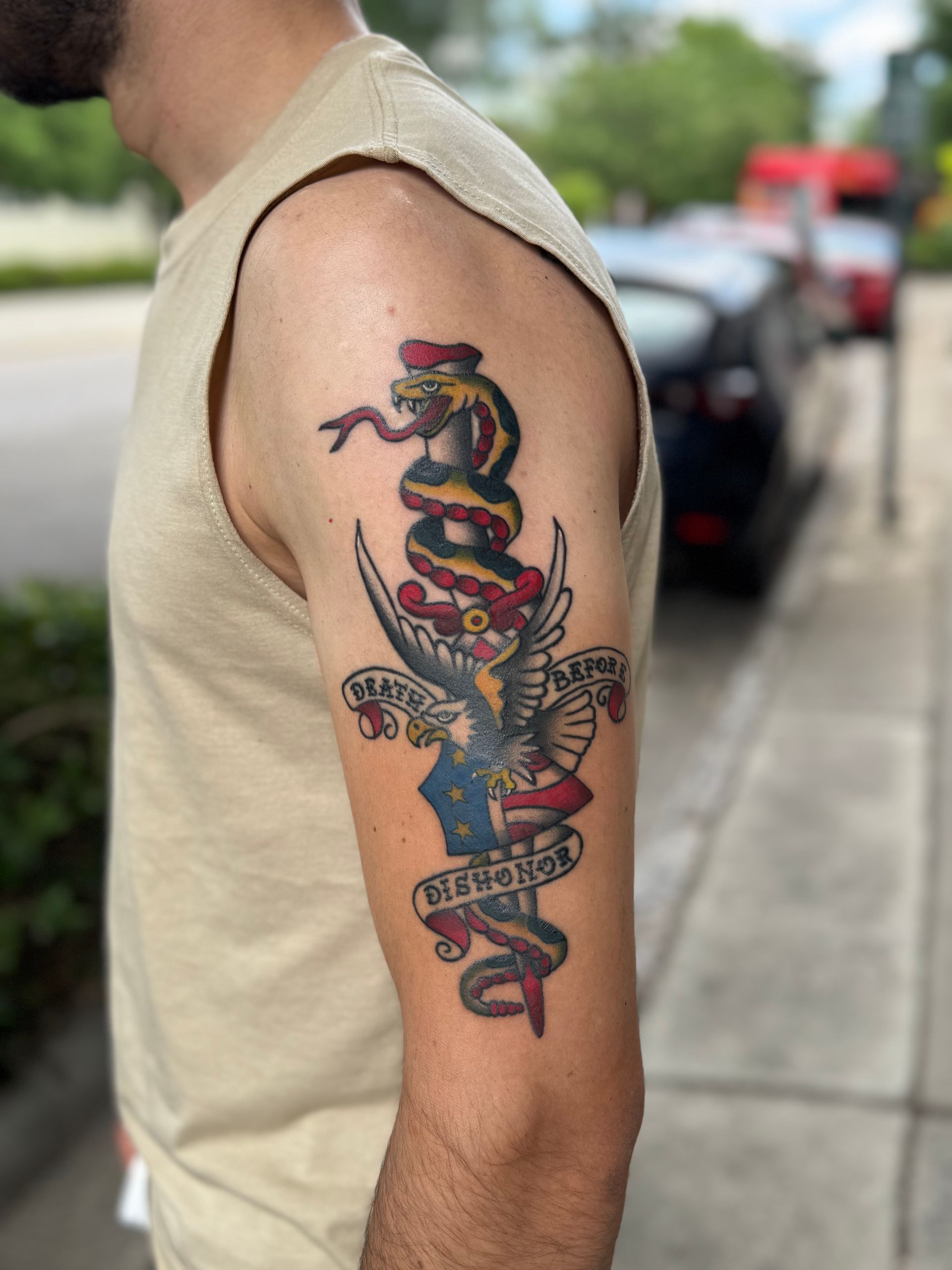 I haven’t been tattooing for long, but I’ve picked it up quickly. I’m constantly learning new styles and techniques. So far, I’ve become proficient in fine line tattoos, black & grey, and American traditional styles. My goal is to master multiple styles so I can handle any tattoo that comes through the door. I especially enjoy creating bold, beautiful, simple, and readable tattoos.