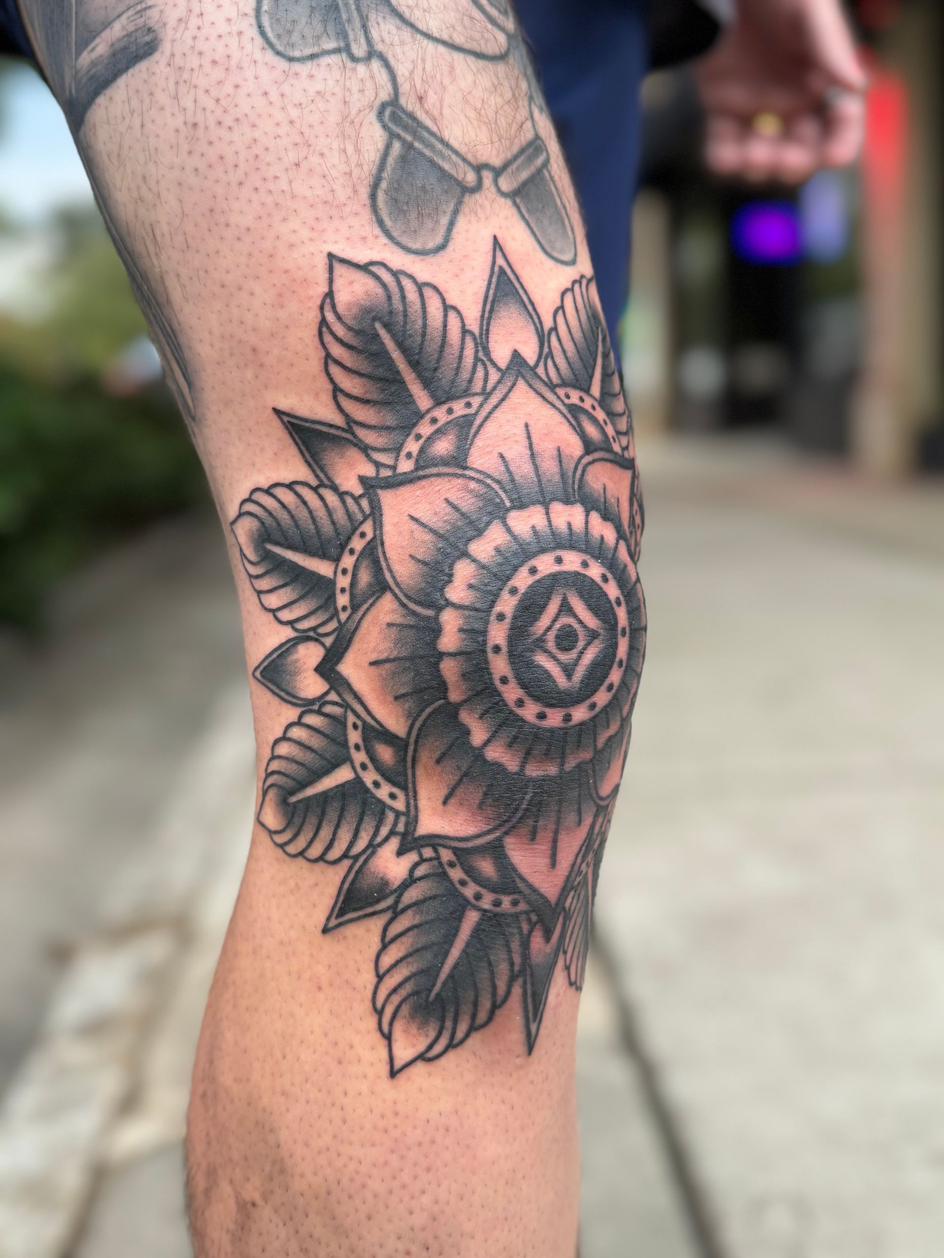 Outside of tattooing, I love drawing with pen, pencil, or creating digital art with a focus on symmetry and repetition, similar to mandalas. I draw inspiration from psychedelics or from within—I close my eyes, and shapes and forms emerge from the darkness.