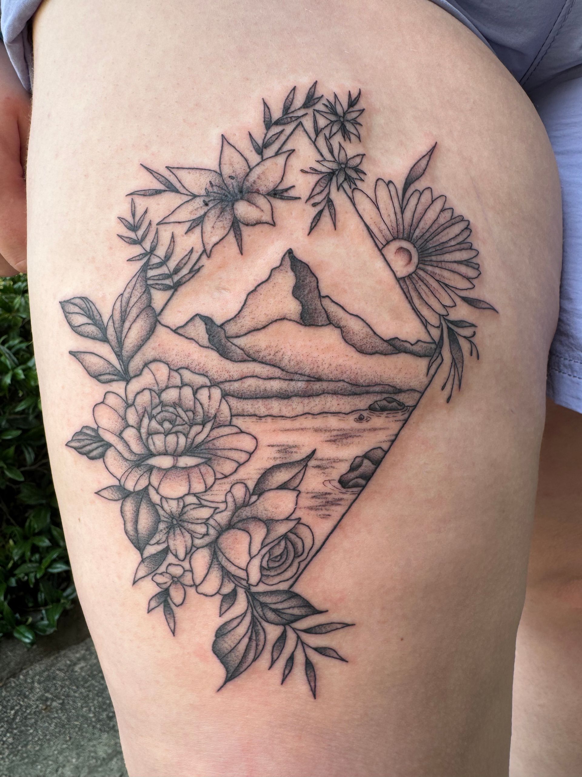 I’m comfortable creating custom designs or working from references provided by clients. When designing a tattoo, I often check in with the client throughout the process to ensure their ideas are being brought to life. I also like to put clients at ease by joking that it’s my first tattoo, and it’s probably going to hurt a lot.